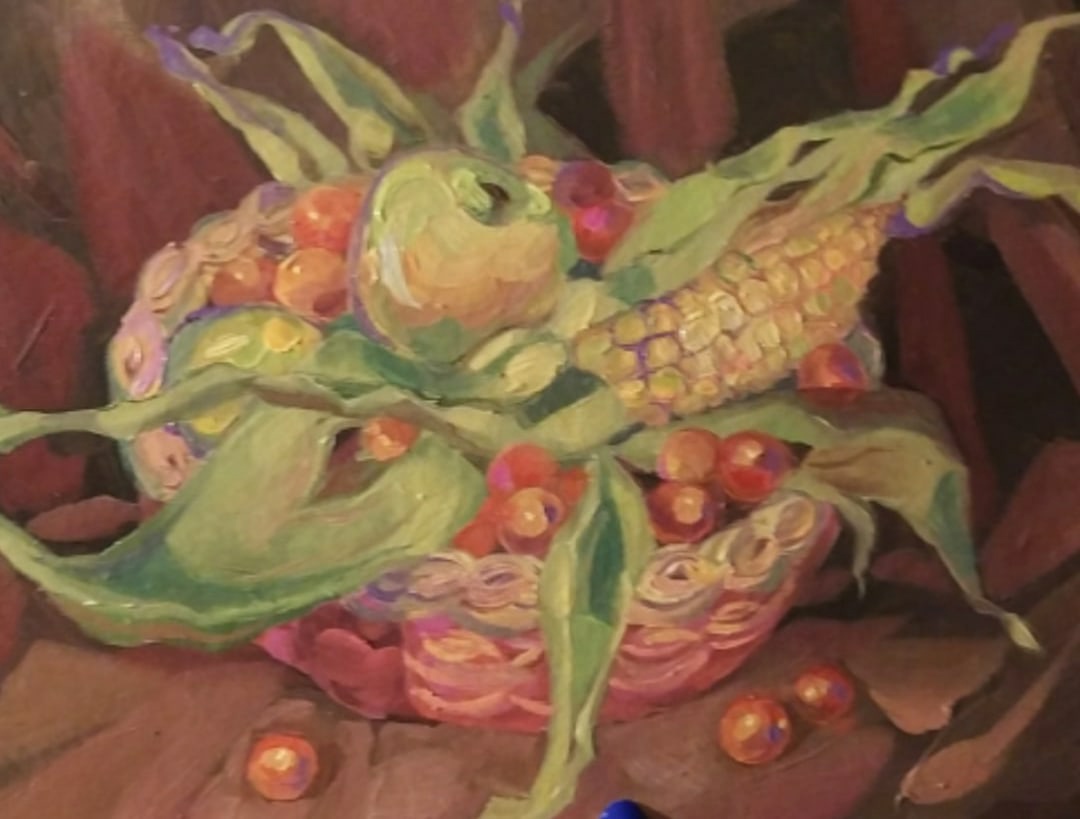 (Овощи в корзине), 2020. Холст на картоне, масло, 20х30 см