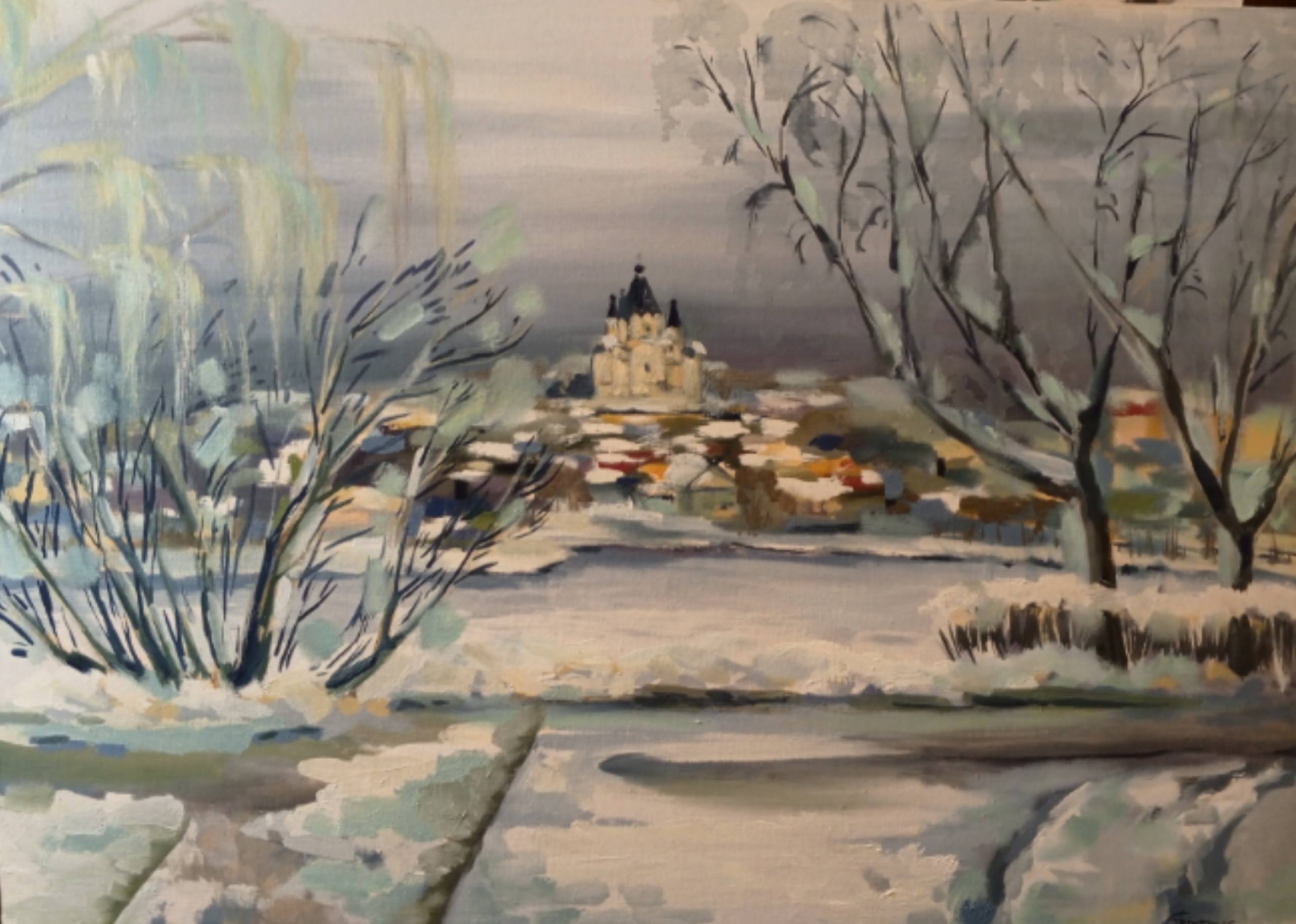 Вид на храм Александра Невского, 2025. Холст, масло, 70х50 см