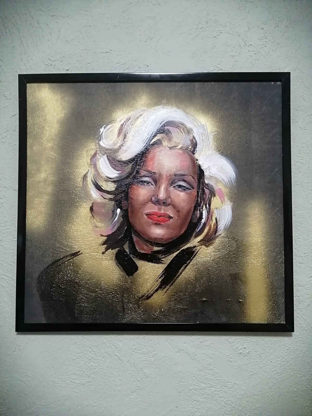 Монро, 2022. ДВП, акрил, золото, багет, 52х49 см