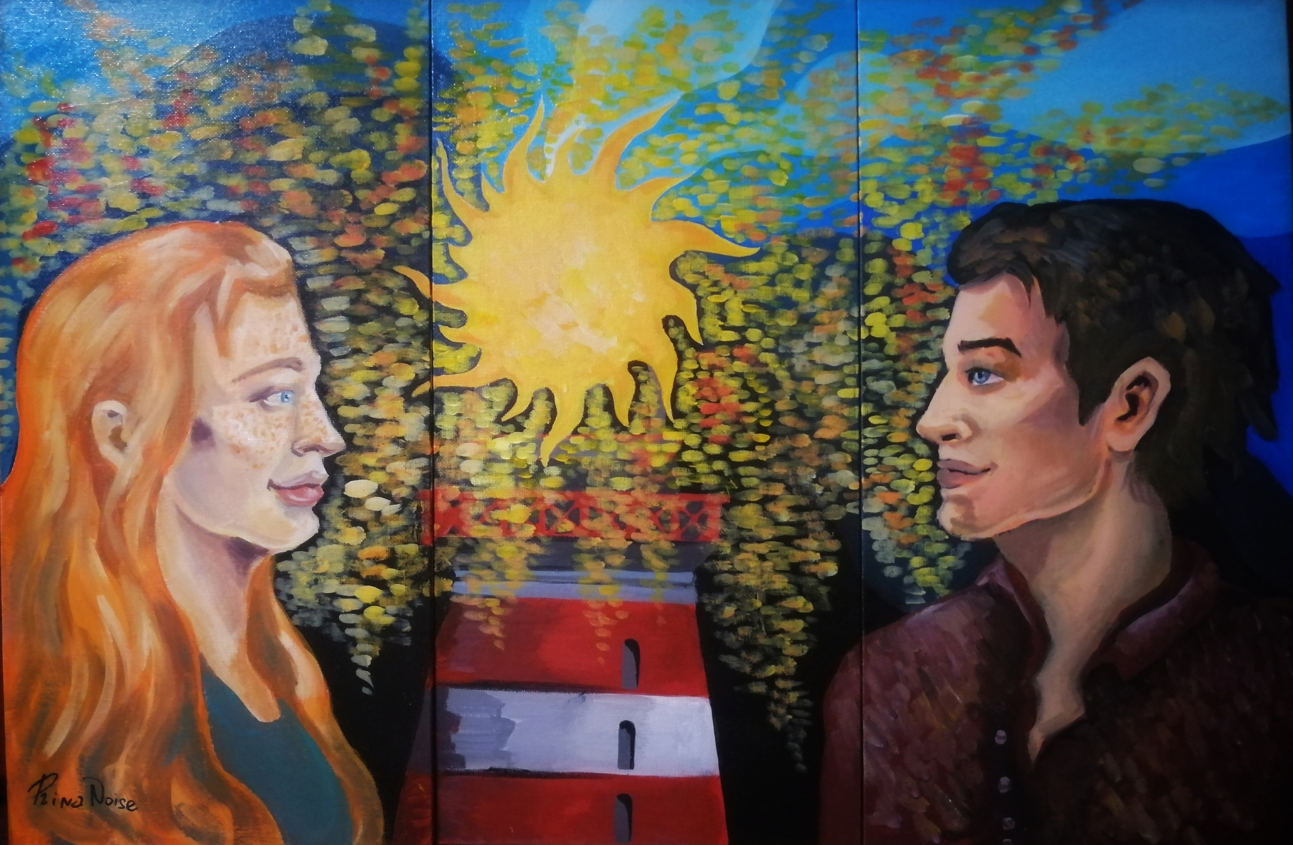 От составителя: Картина триплекс. Первоначальное название: "Между нами пламя маяка".