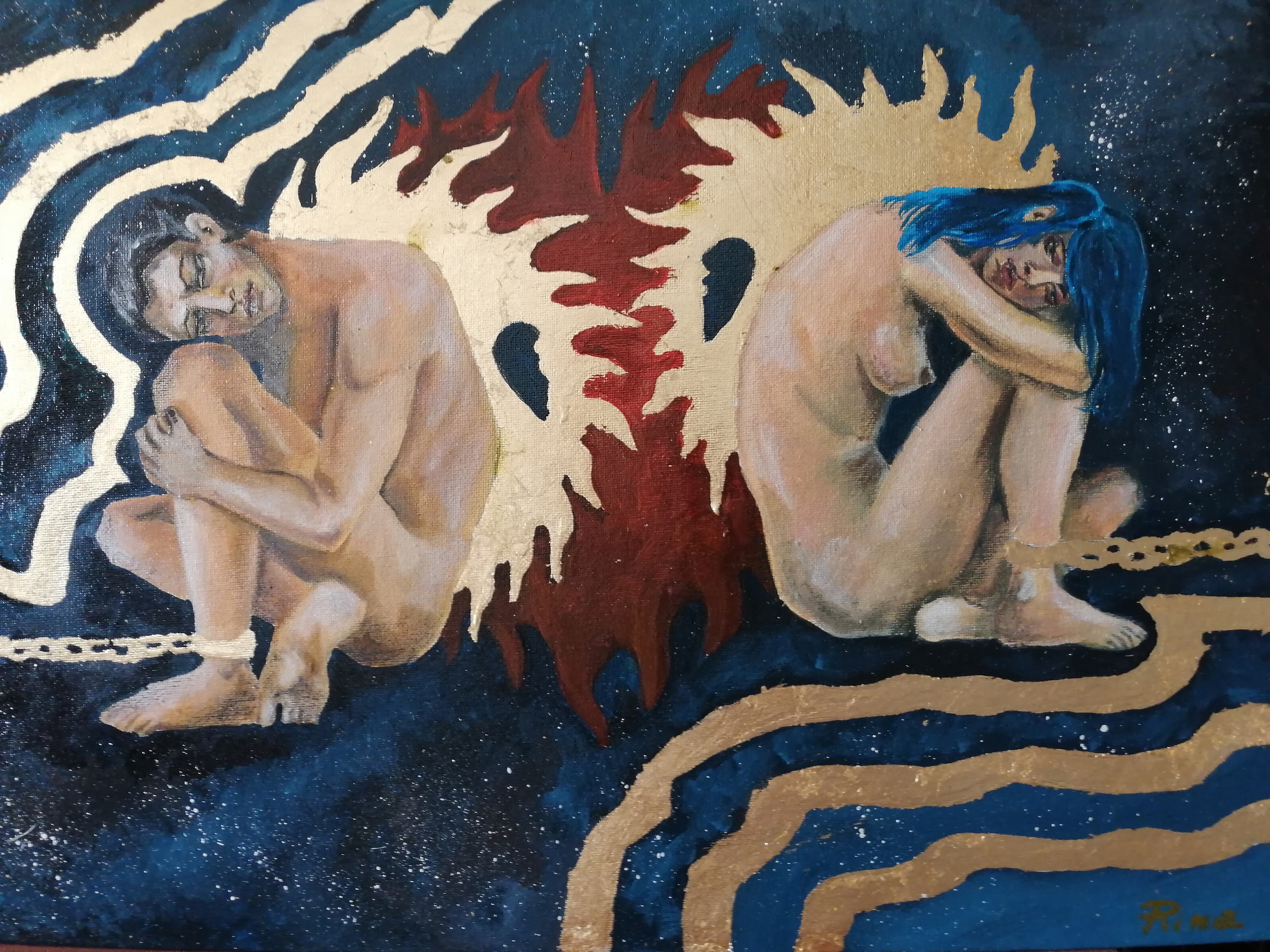 Скованные, 2022. Акрил, поталь, 35х50 см